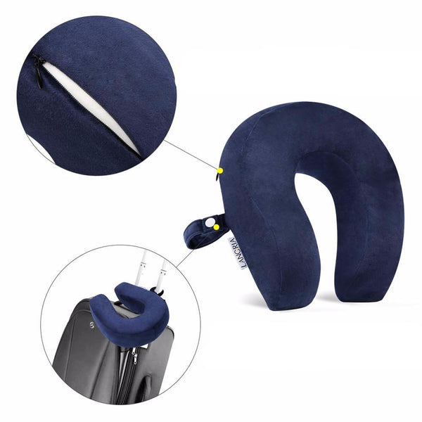 - It has a zippered, removable velour outer cover that is easy to wash and machine washable; lightweight with a snap closure for easy attachment to your luggage.